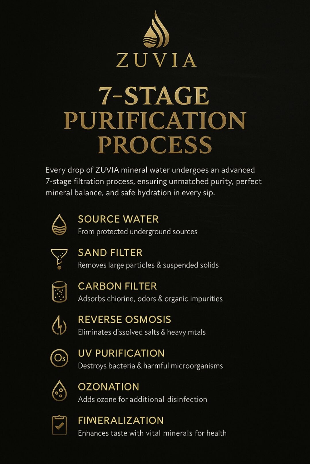 Zuvia Water is redefining the packaged drinking water industry through an uncompromising focus on purity, safety, and innovation. We believe clean drinking water is a fundamental necessity, not a luxury. With advanced purification technologies and hygienic bottling practices, we deliver water that is refreshing, safe, and consistently reliable for everyday consumption.